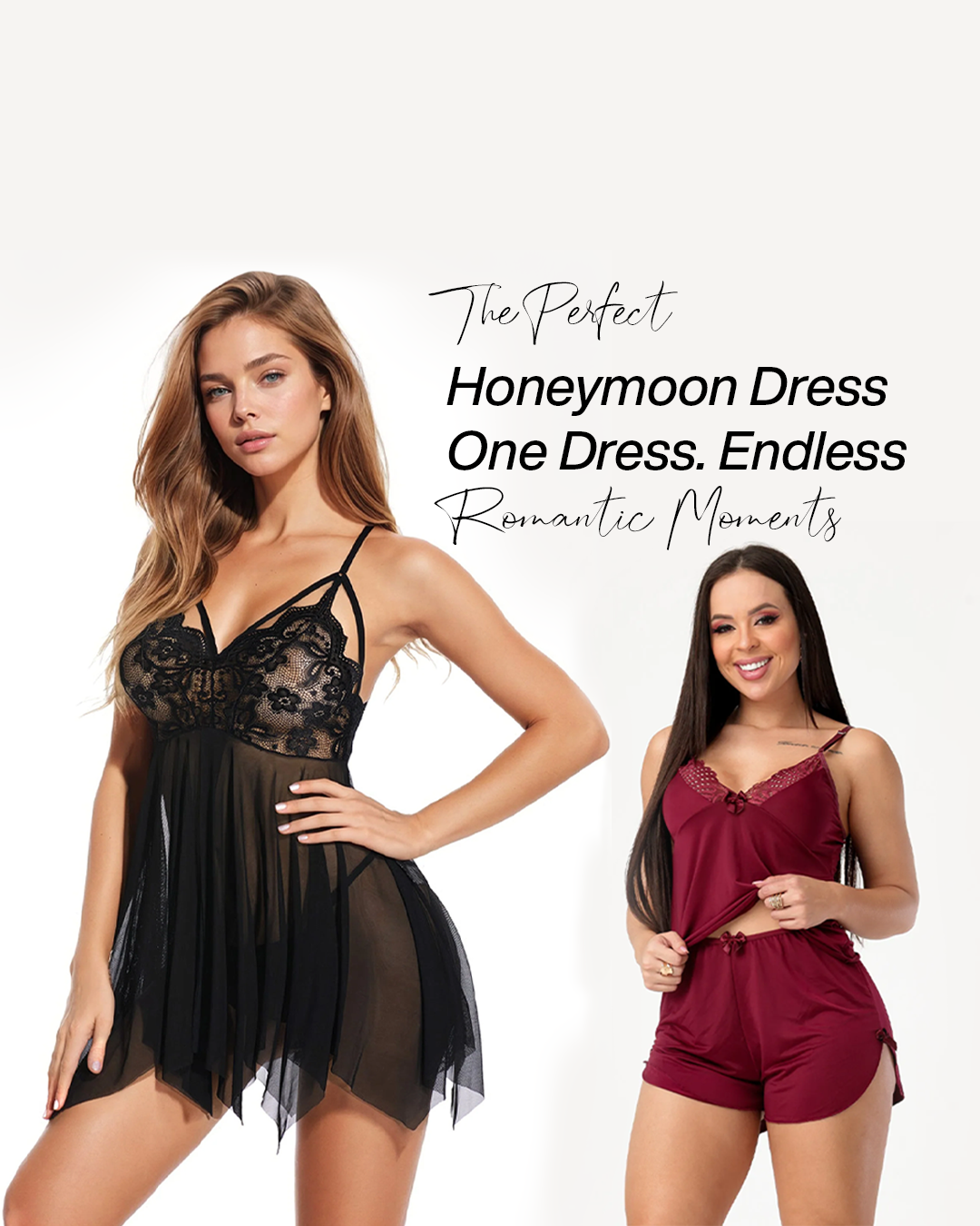 SARA-SI Elegant Eyelash Lace Mesh Babydoll Lingerie Set for Women – Above Knee Sexy Babydoll Nightwear with Adjustable Straps